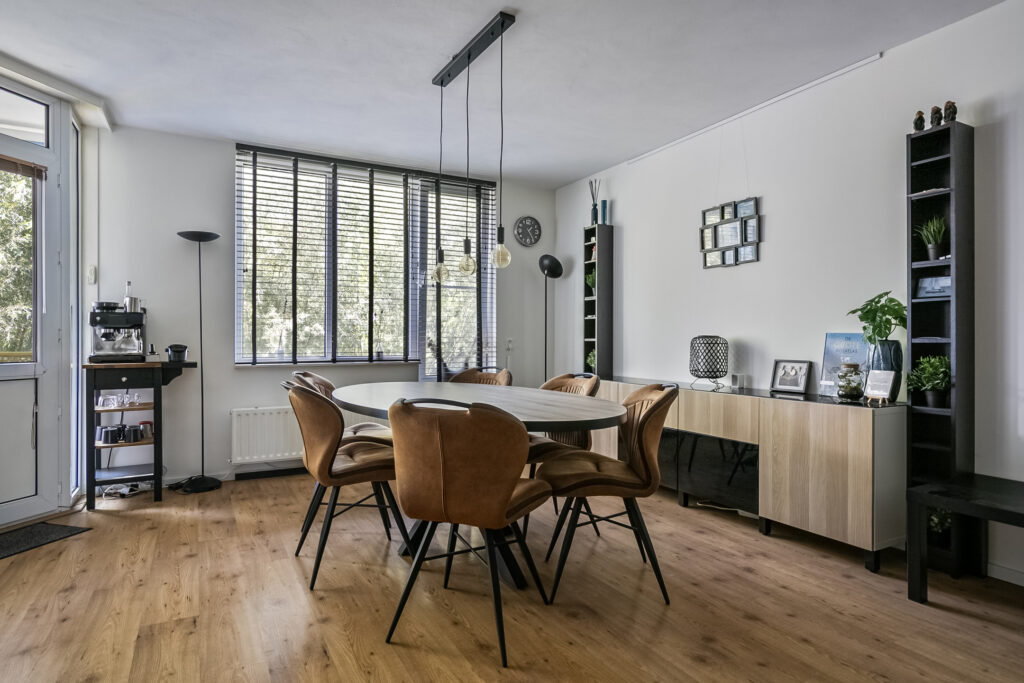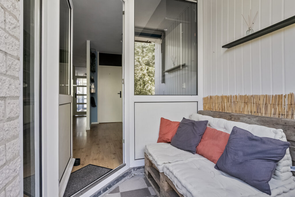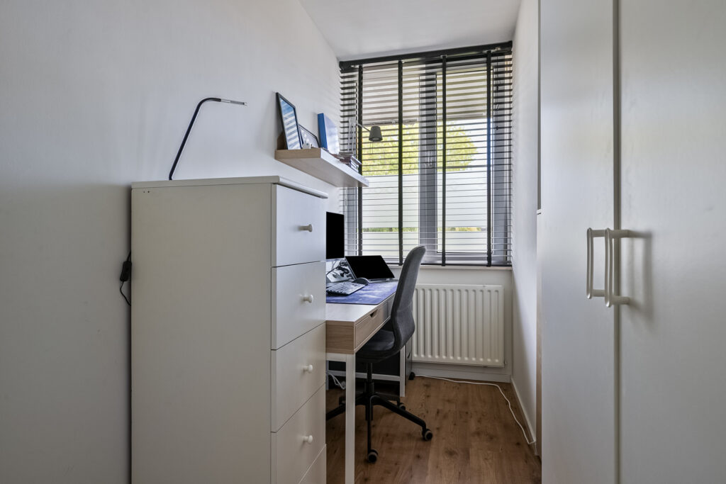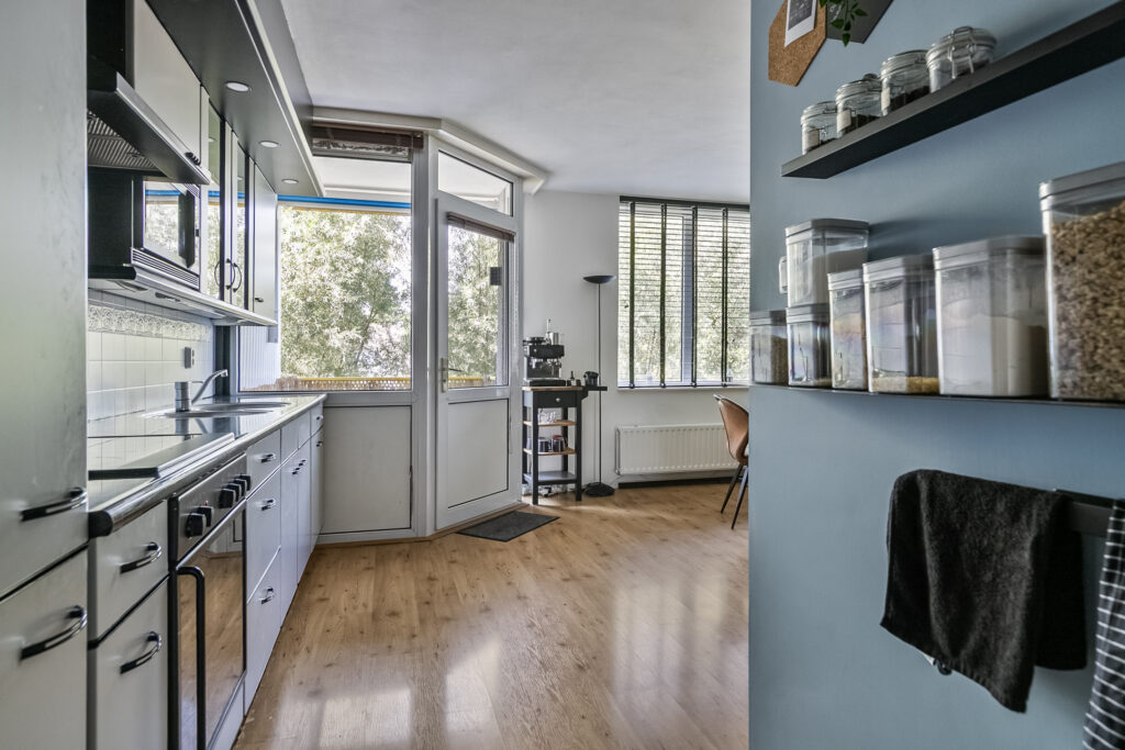 Hal met entree welke toegang biedt tot de ruime slaapkamer I gelegen aan de galerijzijde; kantoor/slaapkamers II tevens gelegen aan de galerijzijde. Moderne en fraaie badkamer (2023) voorzien van ruime douche, waskom met meubel en verwarmde spiegel, hangend closet, elektrische handdoek verwarming en elektrische vloerverwarming; Ruime woonkamer met voldoende ruimte voor een gezellige zithoek en een grote eetkamertafel. Vanuit de woonkamer heeft u toegang tot het zonnige balkon met een fraai uitzicht en voorzien van een elektrisch zonnescherm; Nette open keuken in een recht opstelling voorzien van onder- en bovenkasten, dubbele spoelbak, 4-pits keramische kookplaat, afzuigkap, magnetron, oven, koelkast met vrieslades (2022) en vaatwasmachine (2024) ; Vanuit de keuken is de bijkeuken bereikbaar hier treft u de aansluiting voor de was- en droogapparatuur, mechanische ventilatie (vernieuwd in 2022) en veel opbergruimte. Op de galerij is de meterkast gesitueerd.