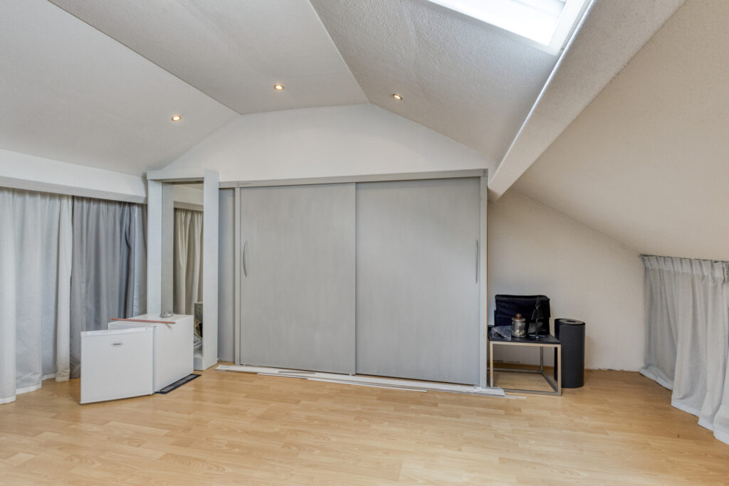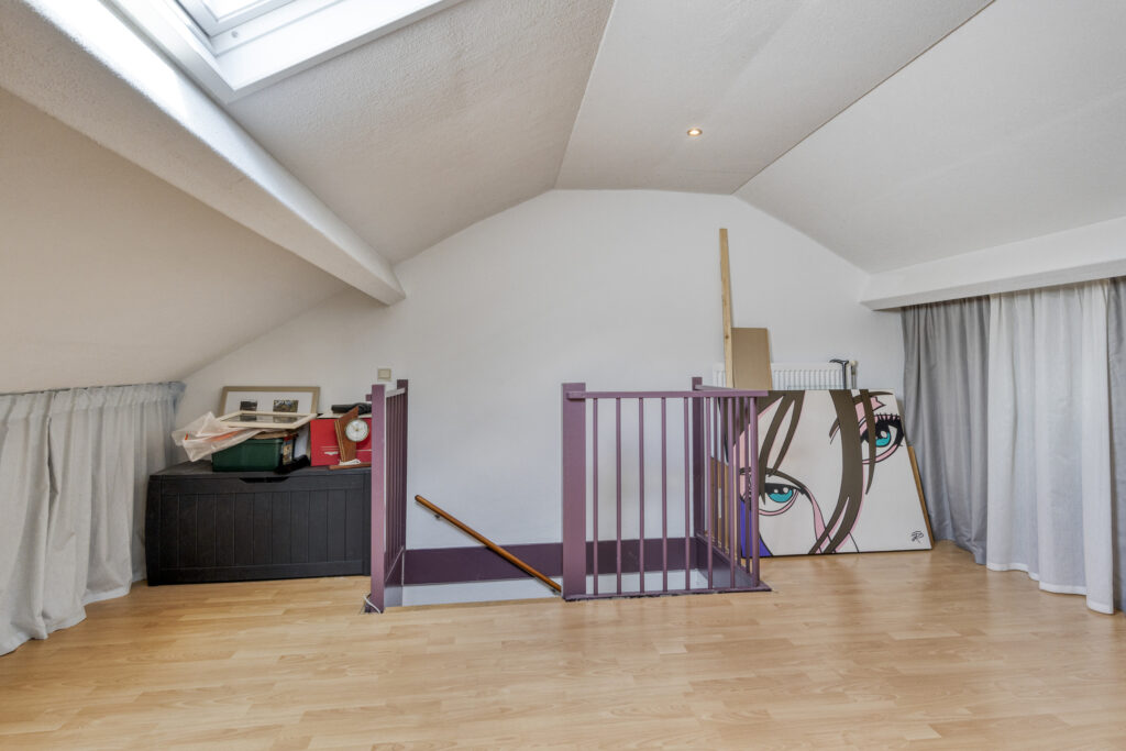 Open zolderruimte, ideaal in te delen in twee slaapkamers, met Velux dakramen en ruime inbouwkast.