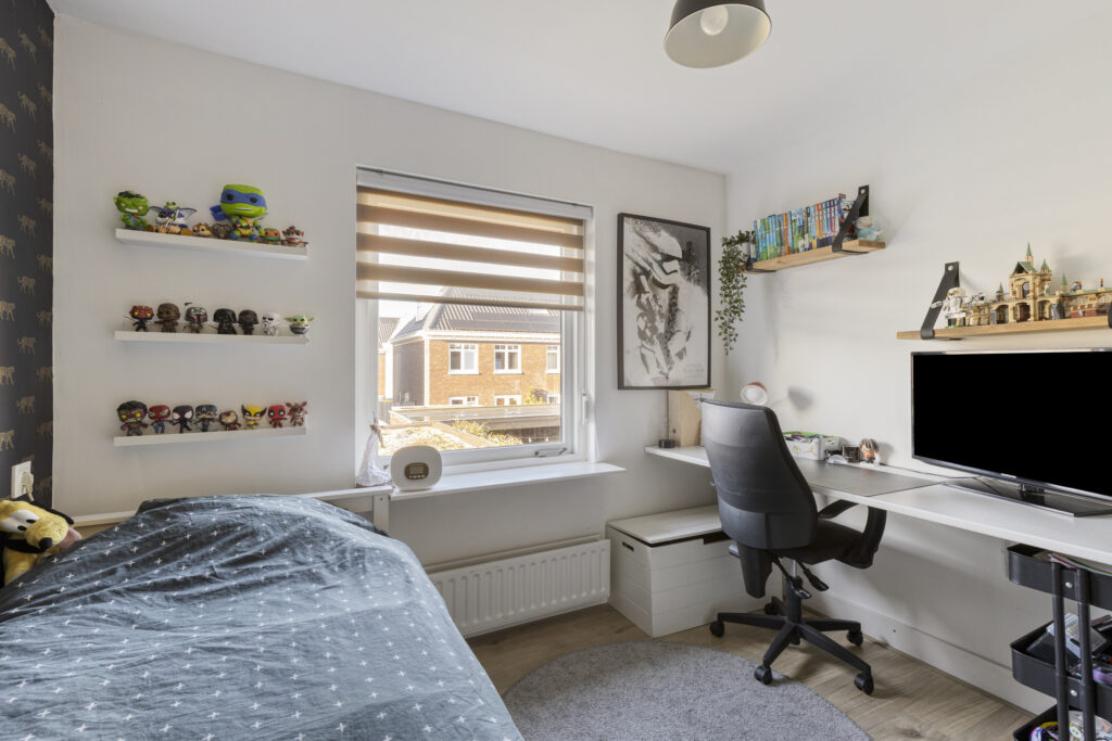 Slaapkamer III is eveneens aan de achterzijde gelegen en voorzien van een rolluik.