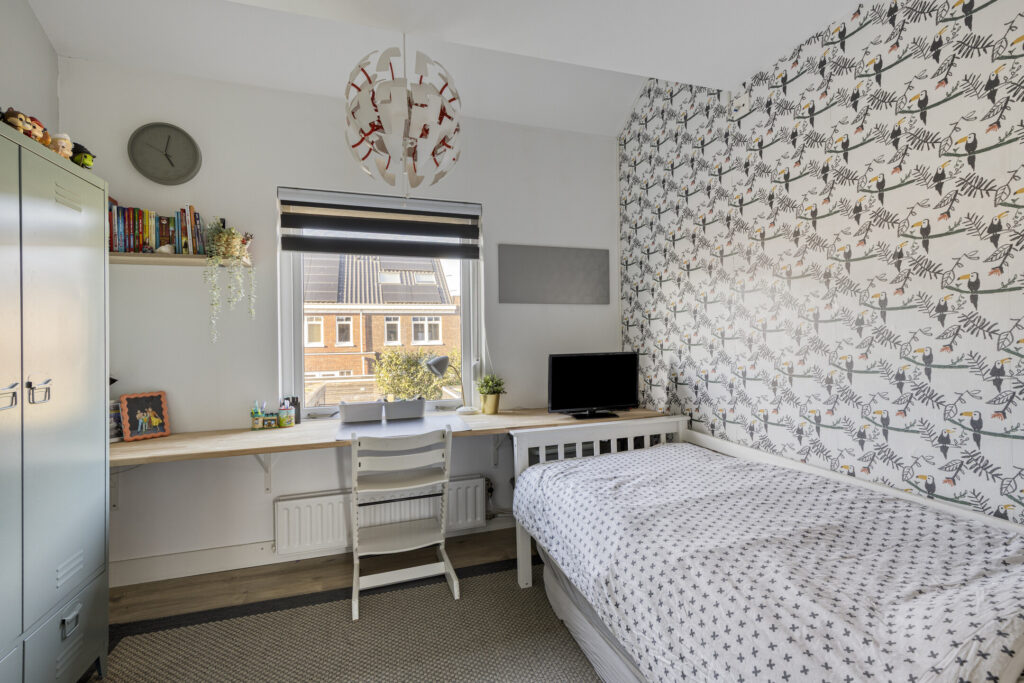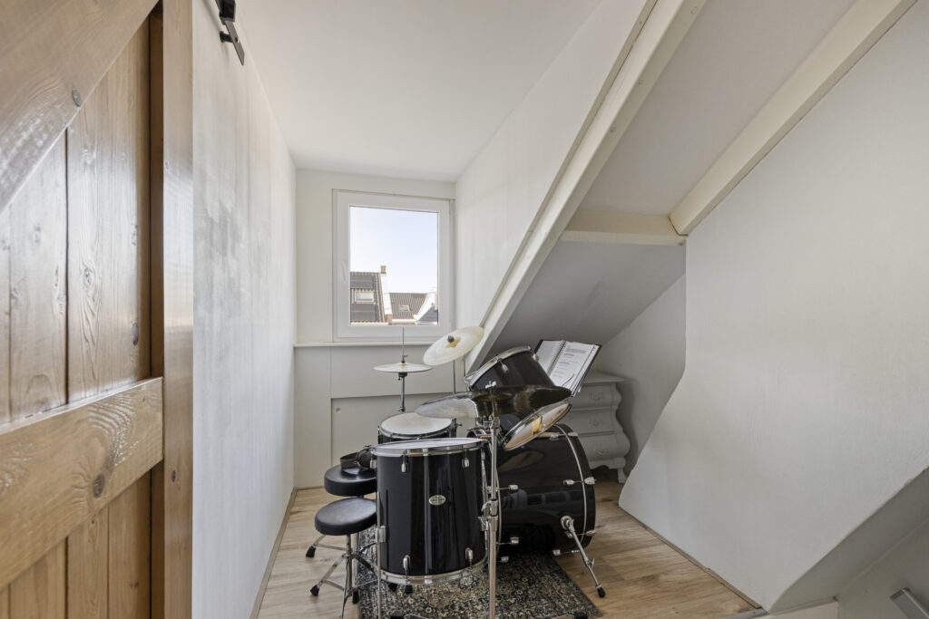 Via een vaste trap bereikt u de voorzolder met aansluitingen voor was- en droogmachine, de opstelplaats van de mechanische ventilatie (2022) en de omvormer van de zonnepanelen. Achter de knieschotten is extra bergruimte aanwezig. Dankzij de grote dakkapel is een volwaardige tweede verdieping ontstaan. De dakkapel strekt zich uit over de voorzolder en slaapkamer en is voorzien van horren en elektrische rolluiken.